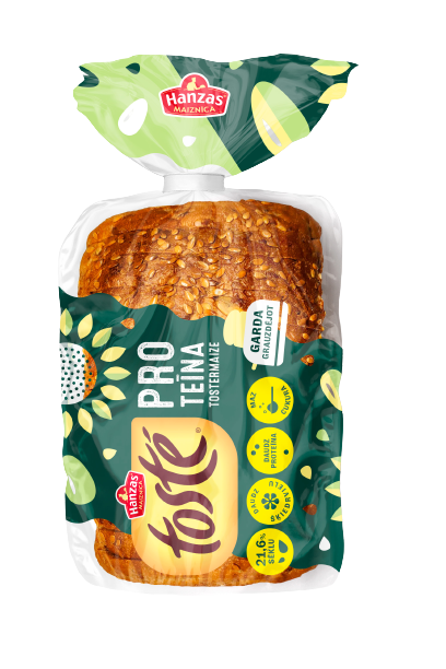 Jaunā Hanzas Maiznīcas tostermaize nodrošina augstu proteīna līmeni, pateicoties pievienotajam auzu proteīnam un 17% sēklu. Maize satur arī daudz šķiedrvielu un maz cukura. Augsts sēklu saturs nodrošina labu garšu un jauku struktūru.