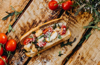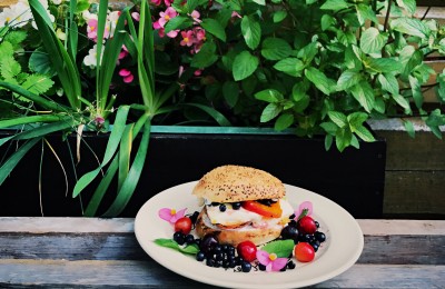 Krāsainais vasaras burgers ar tīģergarnelēm