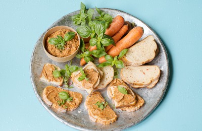 Plāno riku atvērtais sendvičs ar paprikas humosu
