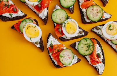 Uzkodu sendviči ar kūpinātu foreli