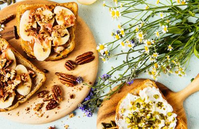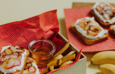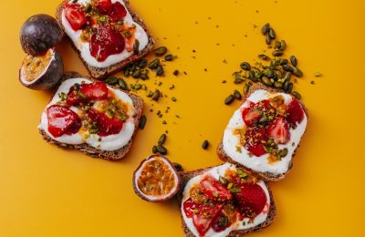 Brokastu maizītes ar biezpienu un persikiem