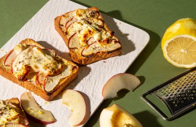 Pilngraudu auzu maizes French toast ar karamelizētiem āboliem