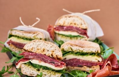 Itāļu sendvičs ar vītinātu gaļu un saulē kaltētu tomātu majonēzi