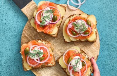 Toste rudzu maize ar kartupeļiem un kūpinātu foreli