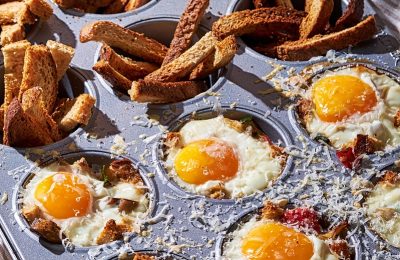 Dārzeņu un olu brokastu groziņi