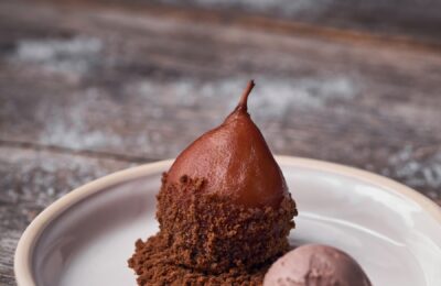 Sarkanvīnā vārīti bumbieri piparkūku mundierī