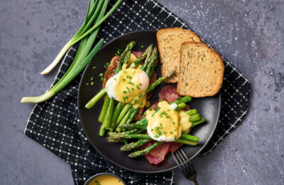 Brokastu rikas ar olu kulteni un kraukšķīgu bekonu