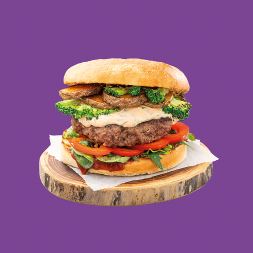 Sagriez brokoli plānās šķēlītēs un viegli apviļā eļļā, līdz tās kļūst spīdīgas, un apcep 1 minūti no katras puses. Izcep burgeru kotletes. Apgrauzdē burgeru maizītes un veido burgeru – maizīte, barbekjū mērce, salāti, paprika, kotlete, brokolis, ķiploku mērce un kartupeļu šķēlītes. Visam pa virsu uzliec burgeru maizītes augšdaļu un būsi ticis pie gardumgardas maltītes!