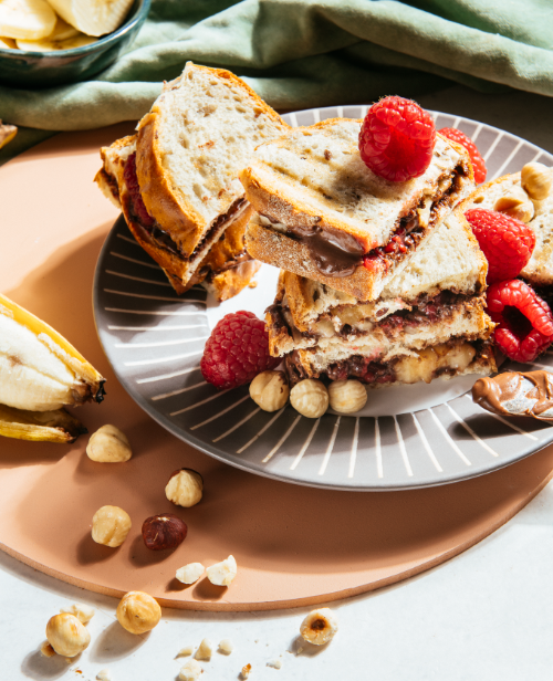 - Maizītēm bagātīgi uzsmērē krēmu, saliek banānus un ogas, pa virsu liek otru šķēli maizes.